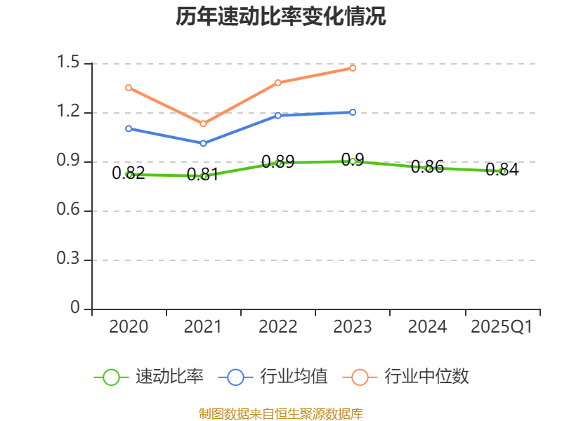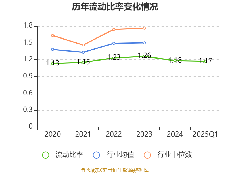 2025年第一季度,公司流动比率为1.17,速动比率为0.84。