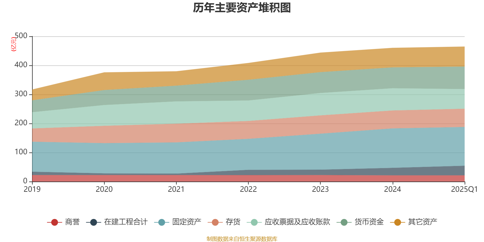 资产重大变化方面,截至2025年一季度末,公司应收票据及应收账款较上年末减少11.77%,占公司总资产比重下降2.11个百分点;在建工程合计较上年末增加28.5%,占公司总资产比重上升1.52个百分点;货币资金较上年末增加7.96%,占公司总资产比重上升1.08个百分点;固定资产较上年末减少1.77%,占公司总资产比重下降0.81个百分点。