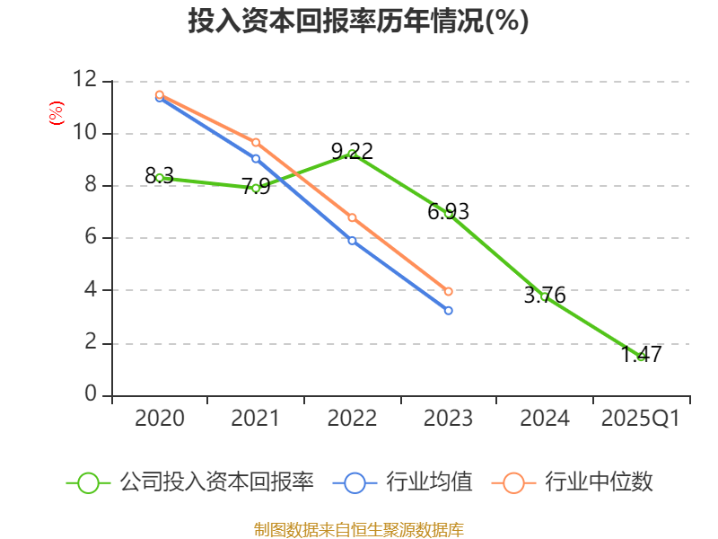 盈利能力方面, 2025年一季度公司加权平均净资产收益率为2.39%,同比上升0.82个百分点。公司2025年第一季度投入资本回报率为1.47%,较上年同期上升0.51个百分点。